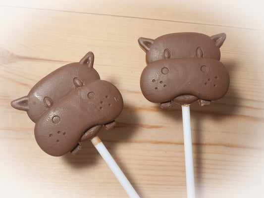 Hippo Safari Animal Belgian Milk Chocolate Lollipops x 4