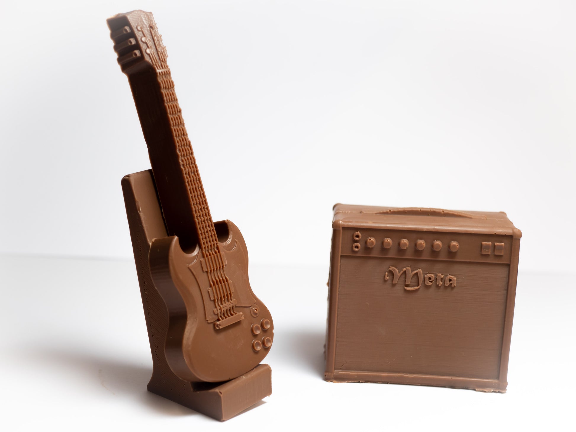Exclusive guitar, stand and amp design Belgian chocolates.